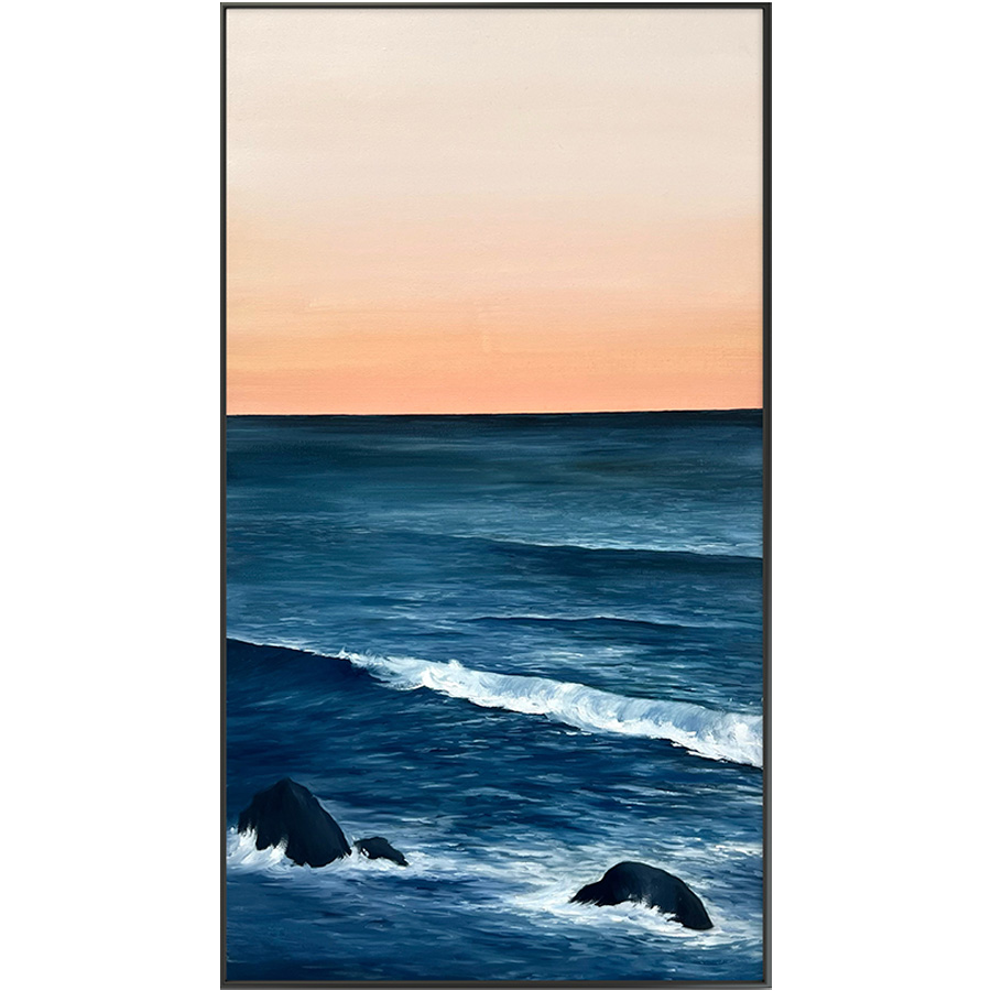 Esta obra pertenece a la serie “Horizontes” Un conjunto de varias pinturas que están profundamente inspiradas en los mares asturianos, capturando su esencia de una manera realista pero con una mirada única hacia los elementos más sutiles del paisaje. Degradados de diferentes colores en los cielos contrastan con los mares tan característicos de Acuña. Piezas que harán que tengas una ventana al mar en tu casa.