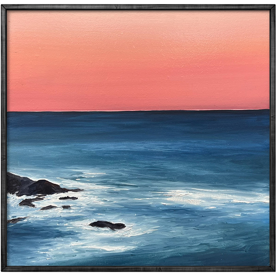 Esta obra pertenece a la serie “Horizontes” Un conjunto de varias pinturas que están profundamente inspiradas en los mares asturianos, capturando su esencia de una manera realista pero con una mirada única hacia los elementos más sutiles del paisaje. Degradados de diferentes colores en los cielos contrastan con los mares tan característicos de Acuña. Piezas que harán que tengas una ventana al mar en tu casa.