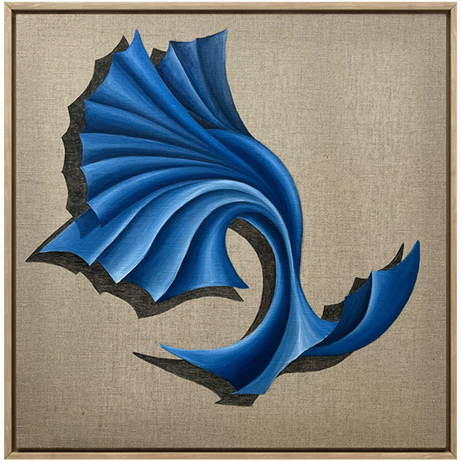 Esta obra pertenece a la serie “Blue Abstraction”. Un serie de pinturas donde Acuña investiga los fondos marinos a través de la abstracción. Crea formas únicas inspiradas en elementos como los corales, partes de peces o diferentes tipos de algas. Estas formas reposan en fondos negros simulando las profundidades del mar o en tonos arena con sombra proyectada. Unas piezas elegantes que darán un toque sofisticado en cualquier ambiente.