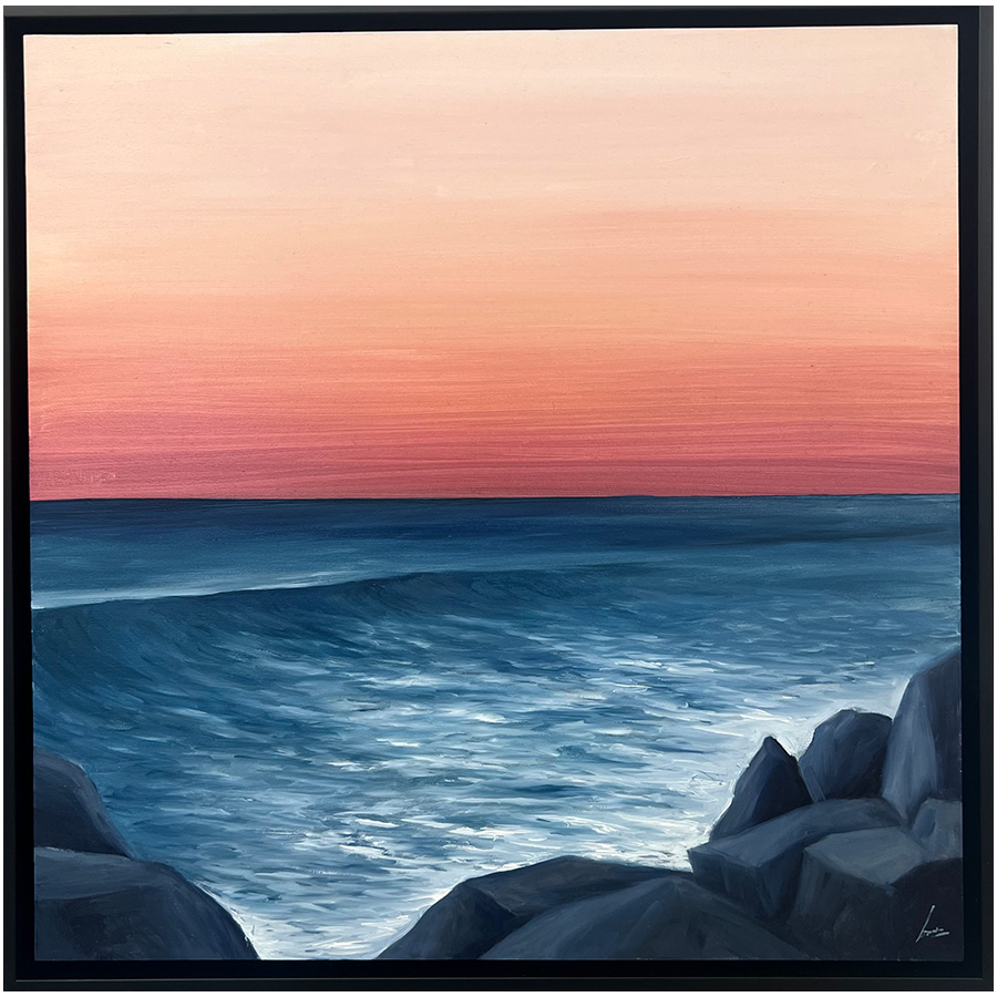 Esta obra pertenece a la serie “Horizontes” Un conjunto de varias pinturas que están profundamente inspiradas en los mares asturianos, capturando su esencia de una manera realista pero con una mirada única hacia los elementos más sutiles del paisaje. Degradados de diferentes colores en los cielos contrastan con los mares tan característicos de Acuña. Piezas que harán que tengas una ventana al mar en tu casa.